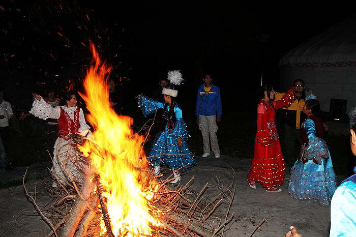 夜幕降临开始载歌载舞